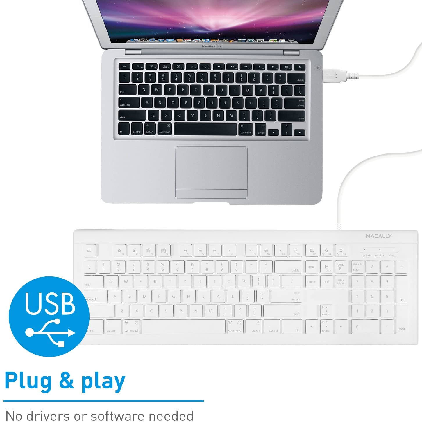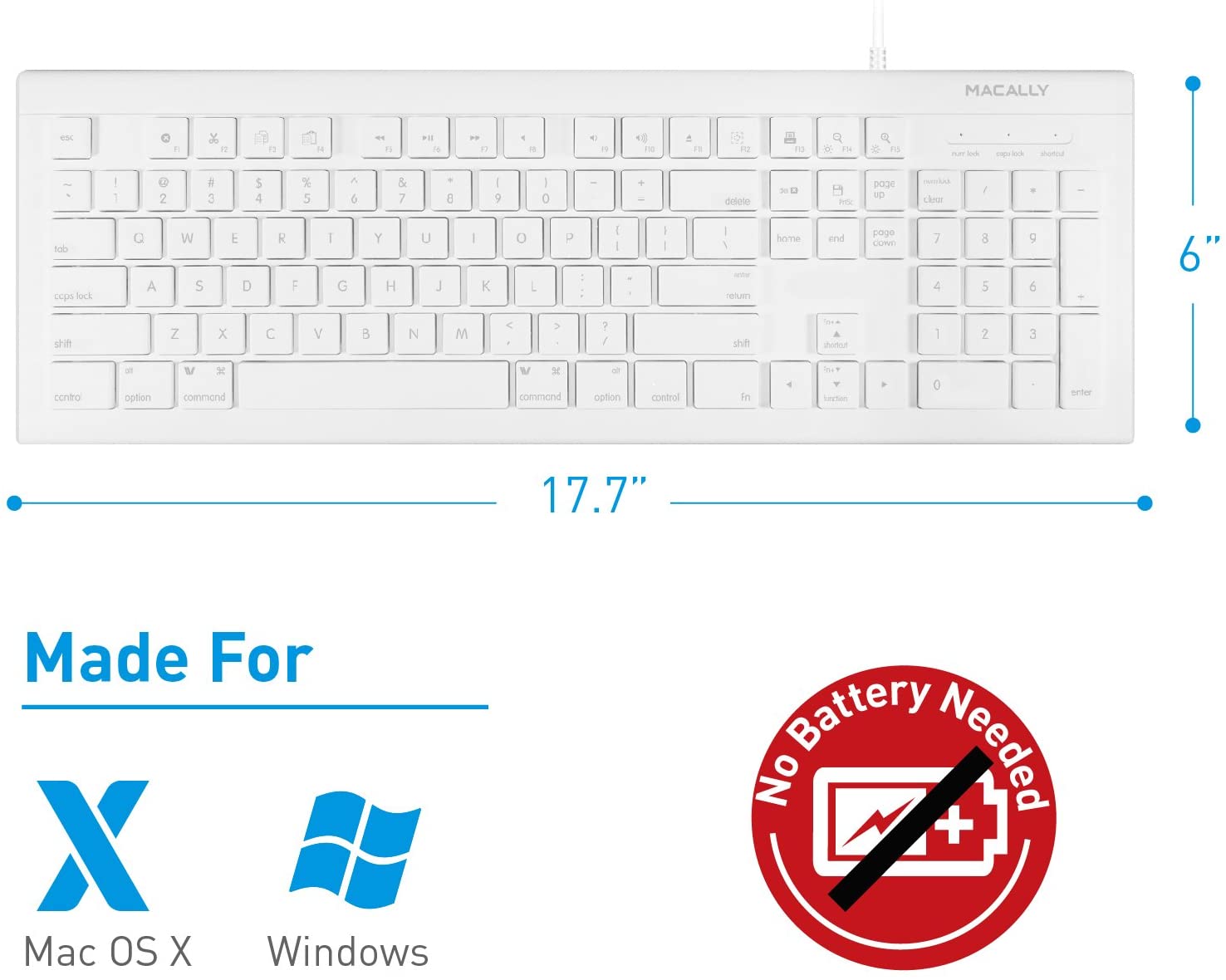 Macally - Teclado con cable USB (MKEYE) para MAC y PC – Blanco.