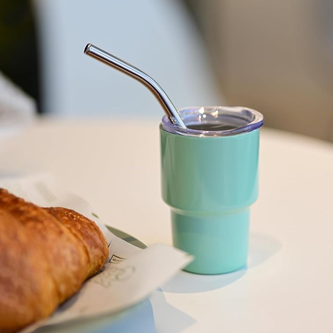 Cada vaso viene con una tapa hermética y un popote reutilizable, evitando derrames y facilitando el transporte.