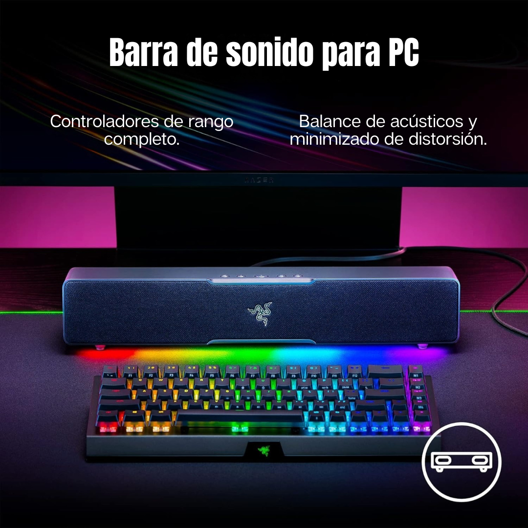 Razer Leviathan V2 X – Barra de Sonido Compacta para PC con Audio Potente y RGB ChromaDisfruta un sonido envolvente y limpio en tu escritorio con la Razer Leviathan V2 X, una barra de sonido compacta . Ideal para gaming, música y cine en tu PC. Audio claro y envolvente con dos controladores de rango completo y dos radiadores pasivos. Produce hasta 90 dB. Alimentación y audio por USB-CFunciona con un solo cable USB Tipo-C, lo que simplifica la instalación y asegura una transmisión de audio estable y dinámica. Bluetooth 5.0 NUEVO - CAJA ABIERTA. Resistente al agua: No