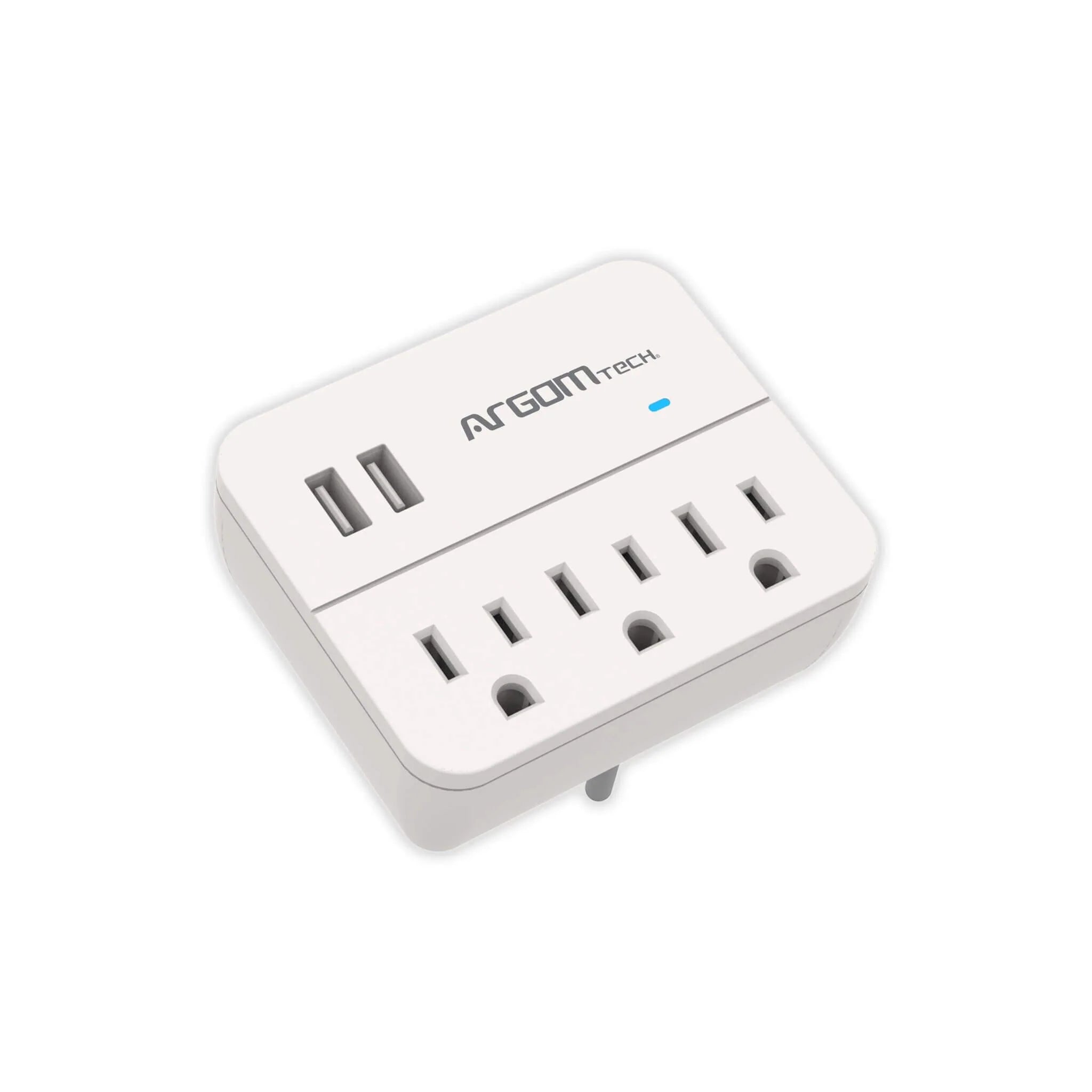 Tomacorriente, Regleta con Protector de voltaje, Estación De Carga Protector Contra Sobretensiones 3 Tomas/2 Usb. Color Blanco.Incluye protector contra sobretensiones incorporado contra picos y quemaduras del dispositivo.Se conecta directamente a la pared para multiplicar los enchufes sin enredos de cables.Permite la carga simultánea de dispositivos compatibles con USB.Le ahorra tiempo y dinero al no tener que reemplazar todo el tomacorriente.EspecificacionesVoltaje: 125 V, 15 A, 60 HzCapacidad: 1875 W2 puertos de carga USB para un total de 2.1 AProtector contra sobretensiones 450 J con indicador LEDAprobado por Intertek (certificación ETL)