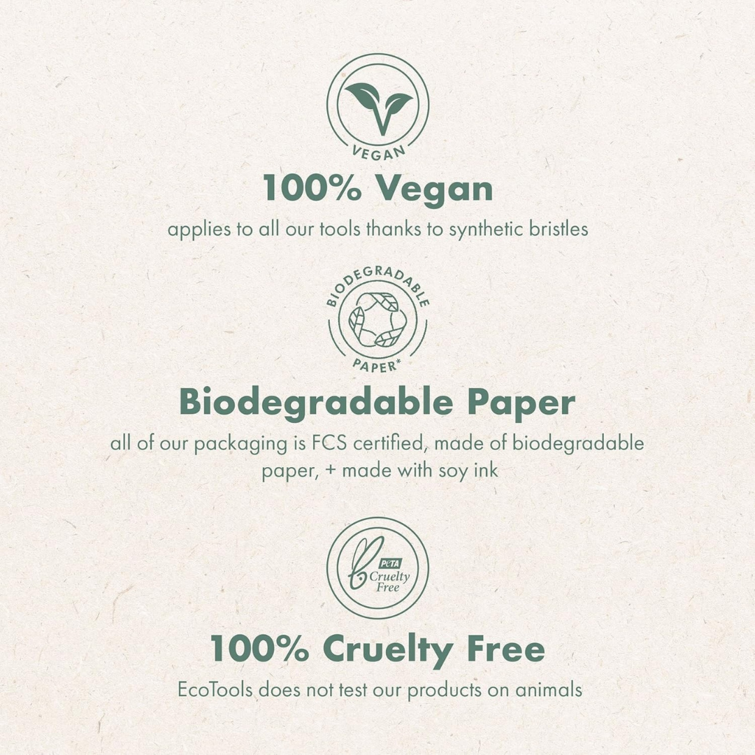 Incluye seis piezas cuidadosamente seleccionadas, ideales para base, difuminado, delineado y rubor, permitiendo crear looks completos con facilidad. Las brochas están hechas a mano con materiales ecológicos, son 100 % veganas y libres de crueldad animal, garantizando un uso responsable sin comprometer el rendimiento ni el medio ambiente.
