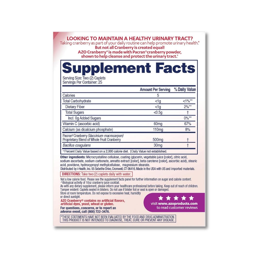AZO SIN AZÚCAR. Las pastillas de arándano AZO no contienen azúcar, mientras que muchas marcas de cócteles de jugo de arándano tienen más de 42 gramos de azúcar y 165 calorías por porción de 12 onzas.