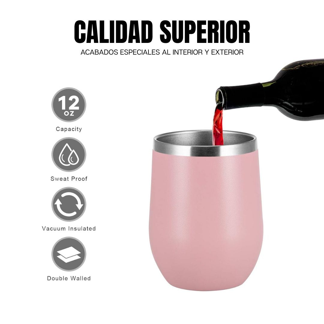 Vaso de vino térmico de 12 oz | Acero inoxidable 304 | Doble pared al vacío.