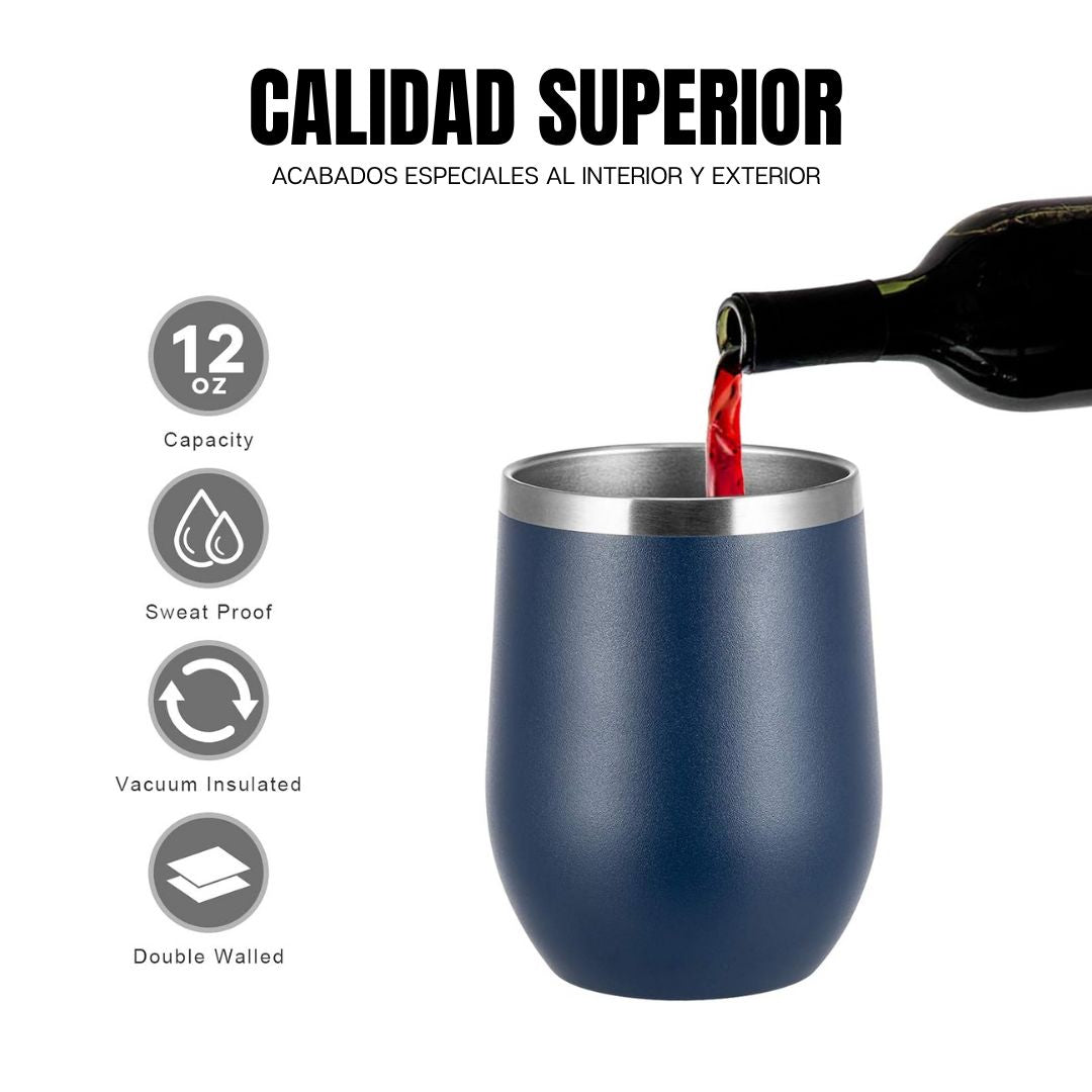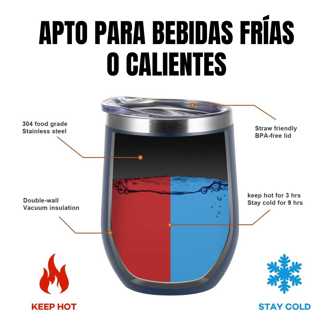 Vaso de vino térmico de 12 oz | Acero inoxidable 304 | Doble pared al vacío.